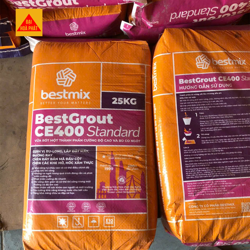 Lượng cốt liệu kích thước lớn thêm vào từ 50÷100% và lượng nước trộn tối đa không quá 14% so với trọng lượng BestGrout CE400 ban đầu.